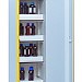 1 porte / 4 étagères / 4 bacs de rétention : Ht x Lg x Prof; extérieur 1980 x 605 x 550; intérieur (4 x 381) x 491 x 419, volume de stockage 4 x 22 litres, poids 142 Kg.