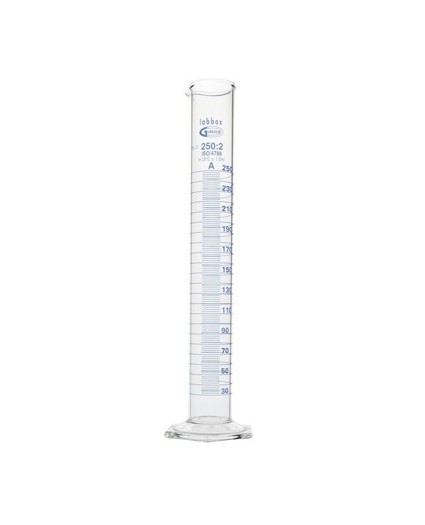 Eprouvette en verre borosilicate, conforme ISO 4788, phamacopée US (USP) et Eichordnung. Norme DIN 12600 avec H mark.Calibré pour contenir "in", numéro de lot gravé sur le verre. Certificat de lot disponible sur le site de notre partenaire.